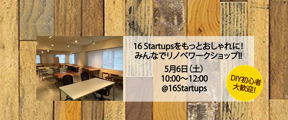 【5/6(土)16Startupsをリノベ!みんなでDIYワークショップ】