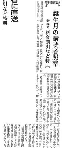 無料情報誌ぱど 誕生月の購読者照準 新媒体 料金割引など特典[2007年2月14日、日経新聞/東京・首都圏経済]